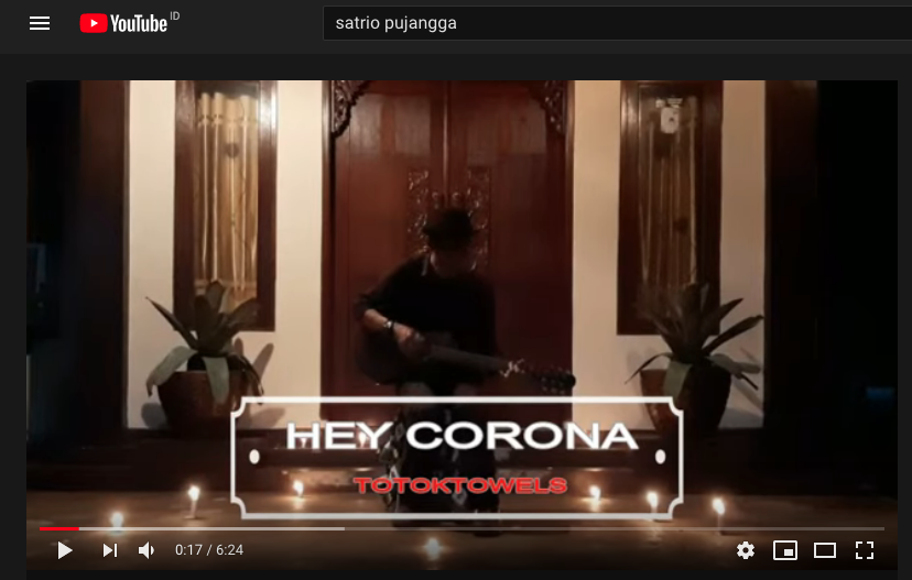 Tapi tidak demikian halnya dengan salah seorang seniman asal Depok, Totok Sarjono. Towels-sapaannya- memilih menciptakan sekaligus menyanyikan lagu bertajuk ‘Hey Corona’. Dia menyanyikannya lewat kanal Youtube ‘Satrio Pujangga’.
