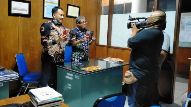 Profesor M Mufti Mubarok menunjukkan temuan suplemen untuk melawan Covid-19.