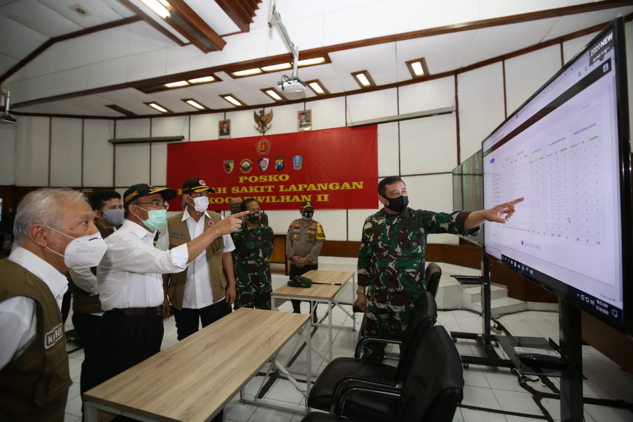 Sebelum melakukan rakor dengan Pangkopgabwilhan II, Menko PMK didampingi Ketua BNPB selaku Ketua Gugus Tugas Nasional Doni Monardo meninjau langsung ke lokasi mess keluarga di Balai Jasa Konstruksi Wilayah IV Kementerian PUPR, BPSDM, lanjut ke RS Lapangan Pangkogabwilhan III Surabaya.