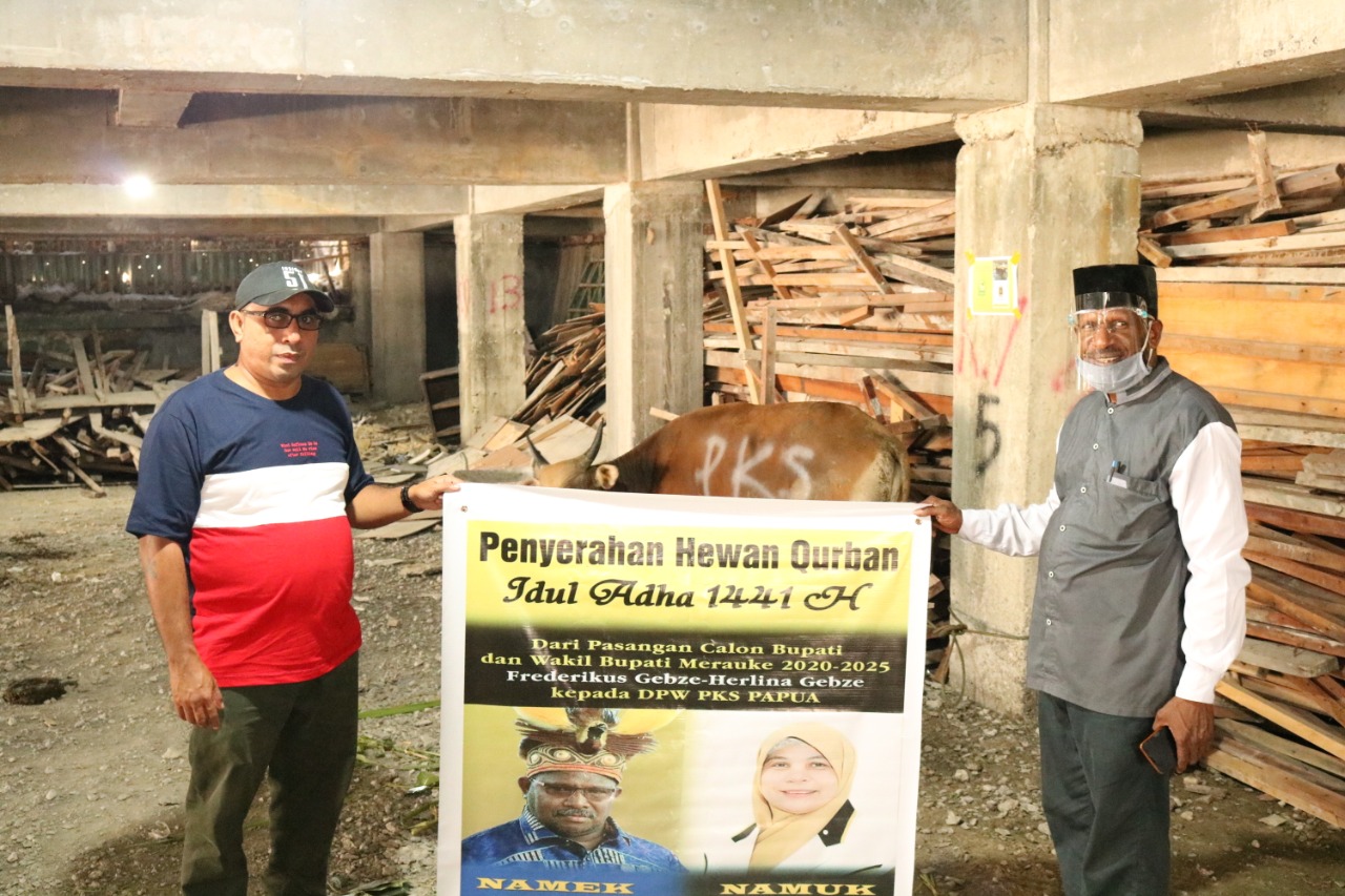 Frederikus yang saat ini siap maju berpasangan dengan Herlina Gebze itu mengatakan, penyaluran hewan kurban juga ia tebar hingga ke sejumlah tempat di luar Merauke. Salah satunya di Masjid Raya Baiturrahim, Jayapura, Papua.