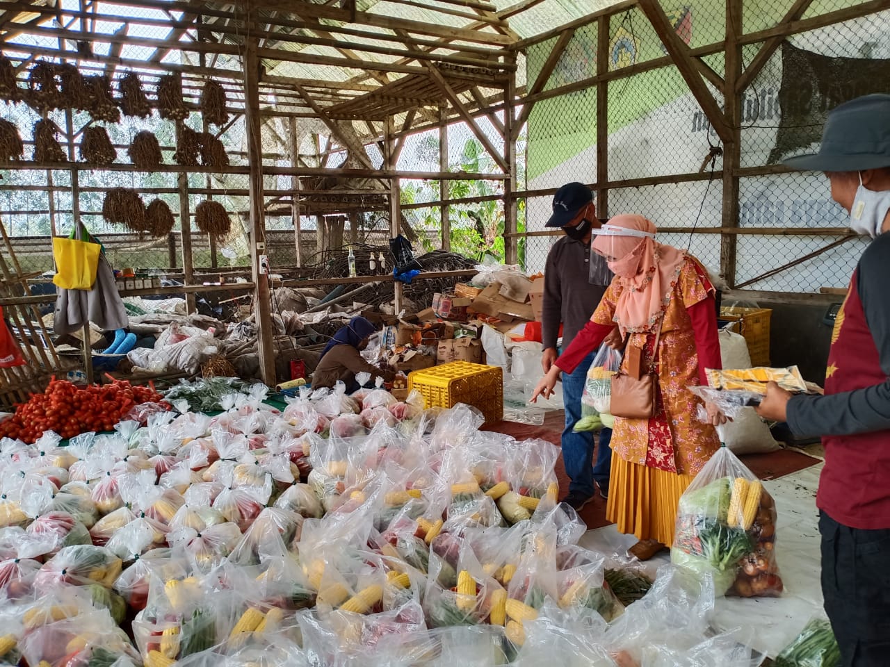 Para petani menyiapkan variasi paket sayuran yang kemudian dipasok ke pasar tani atau bahkan memenuhi berbagai pesanan dari kantor-kantor pemerintahan.