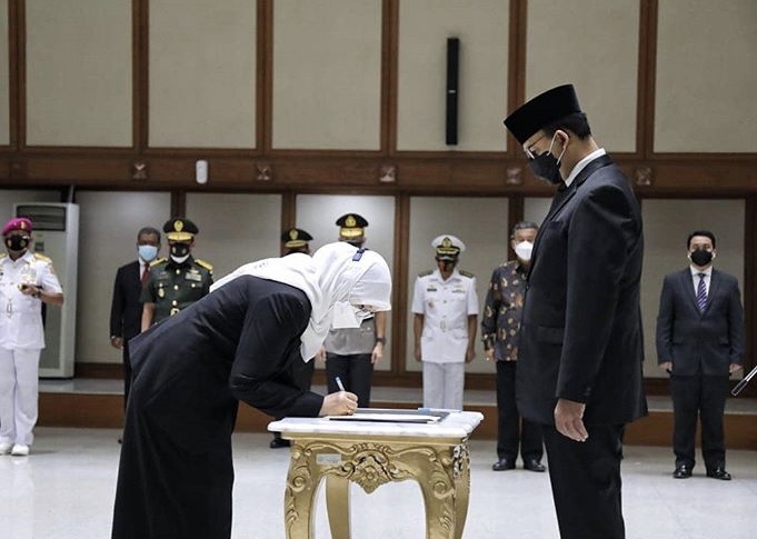 INDONESIAUPDATE.ID – Gubernur DKI Jakarta Anies Baswedan melantik Penjabat Sekretaris Daerah Pemprov DKI Jakarta Sri Haryati di Balai Agung, Balai Kota, Jakarta, Rabu (7/10/2020).