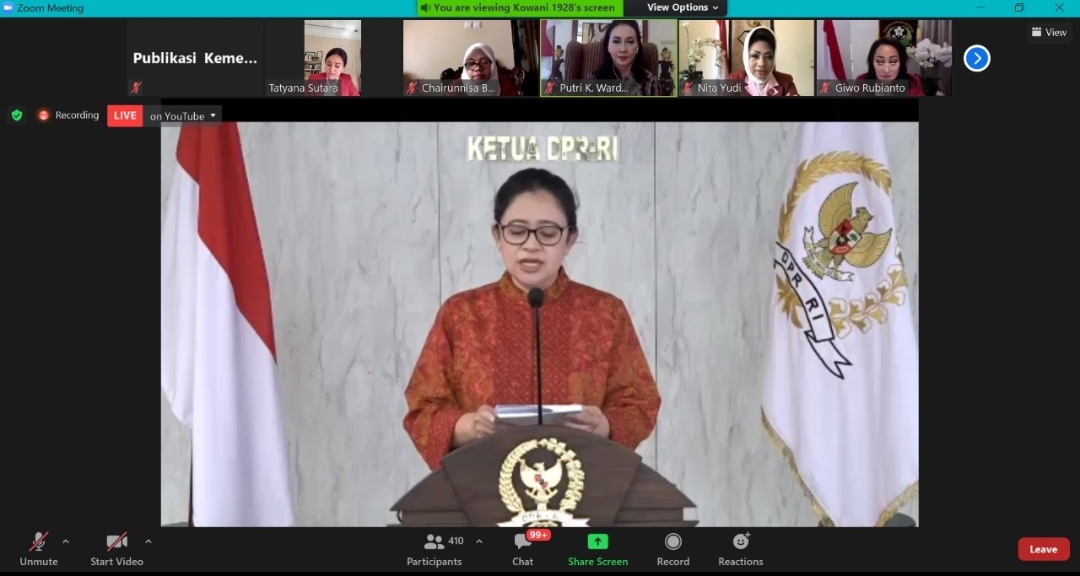Puan mengajak para peserta webinar untuk ikut mengingatkan dan meyakinkan masyarakat bahwa menyertakan perempuan dalam proses pembangunan bukanlah sekadar kebijakan afirmatif, namun juga merupakan kesadaran atas harkat dan martabat manusia.