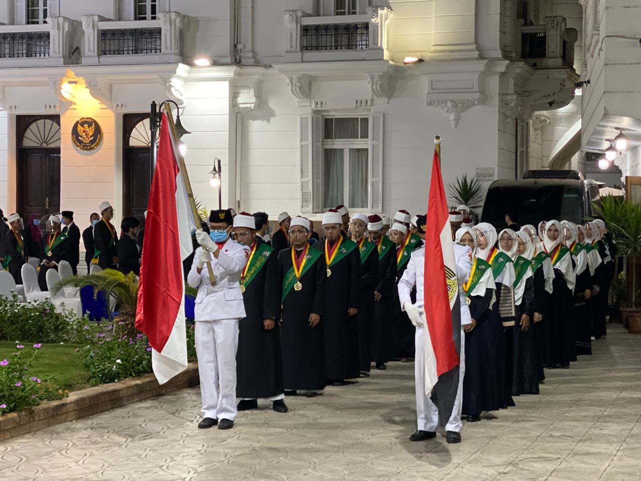 INDONESIAUPDATE.ID – KBRI Cairo bekerja sama dengan Persatuan Pelajar dan Mahasiswa Indonesia (PPMI) Mesir menyelenggarakan acara wisuda dan apresiasi prestasi bagi 170 orang lulusan Universitas Al-Azhar di Wisma Duta, pada hari Selasa, 27 Oktober 2020. Tema yang diangkat untuk acara ini adalah “Kokohkan Jiwa Azhari, Wariskan Islam Wasathy, Mengabdi untuk Negeri”.
