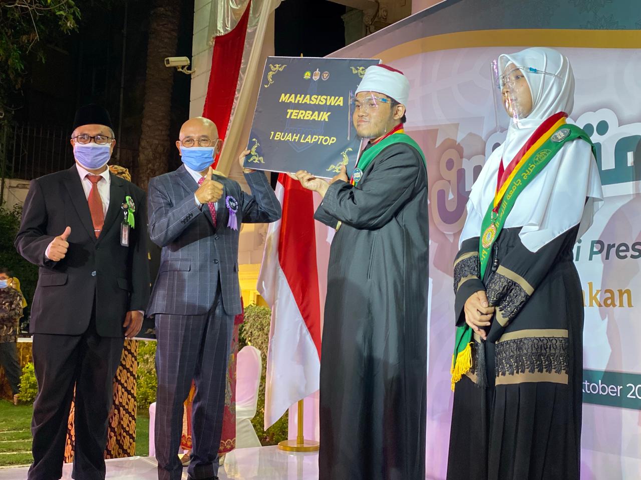 Adapun empat orang lulusan terbaik yang mendapat hadiah laptop adalah Hafash Ubaidillah dari Fakultas Syariah Wa Qanun, Jurusan Syariah Ismaliyah dengan nilai kumulatif 88,72, Mu’adzah Nurul Azizah dari Fakultas Dirasat Islamiyyah Wal-Arabiyah, Jurusan Syariah Islamiyah dengan nilai kumulatif 88,66, Hamidatul Hasanah dari Fakultas Dirasat Islamiyyah Wal-Arabiyah, Jurusan Aqidah Wal-Falsafah dengan nilai kumulatif 87,40 dan Martha Mishbahul Munir dari Fakultas Syari’ah Wa Qanun, Jurusan Syari’ah Islamiyah dengan nilai kumulatif 87,31.