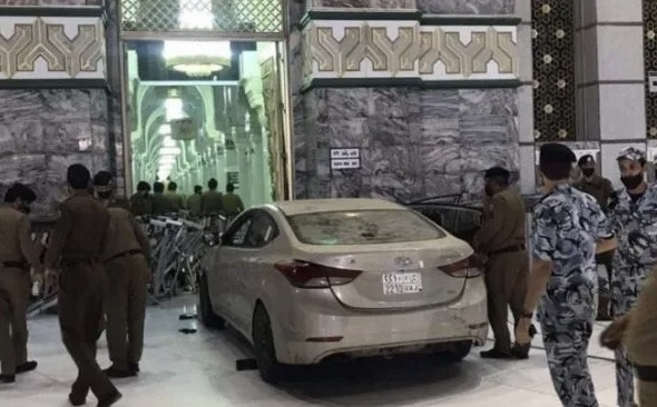 Menurut sebuah laporan, Hyundai tersebut melaju kencang kemudian tidak terkendali dan akhirnya menabrak gerbang masjid 89 King Fahd.