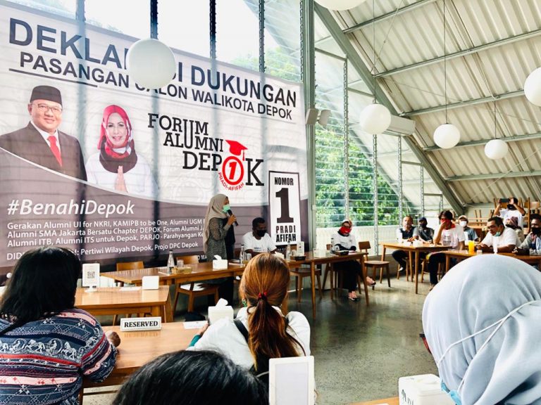 “Dari pertemuan informal kemudian mengerucut membentuk Forum Alumni Depok. Dimana kemudian bergabung juga Pertiwi dan Projo cabang Depok. Dalam konteks Pilwakot Kota Depok 2020 yang akan diselenggarakan pada 9 Desember 2020, Forum Alumni Depok secara sadar, bahwa peluang perubahan ada pada pasangan calon nomor satu, Pradi Supriatna-Afifah Alia,” papar Ketua Alumni Depok.