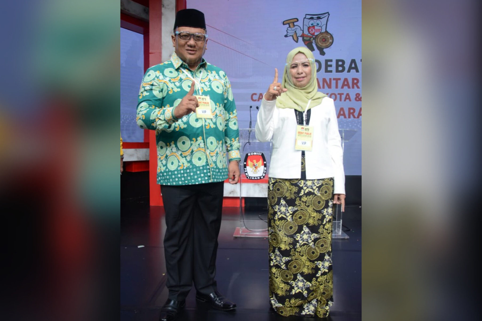 INDONESIAUPDATE.ID – Menghadiri acara Debat Publik Calon Walikota dan Wakil Walikota dalam Pilkada Depok, yang digelar KPU Depok. Pasangan nomor urut 1 Pradi Supriatna-Afifah Alia, kompak mengenakan pakaian batik khas Depok bermotif ‘Gong Si Bolong’.