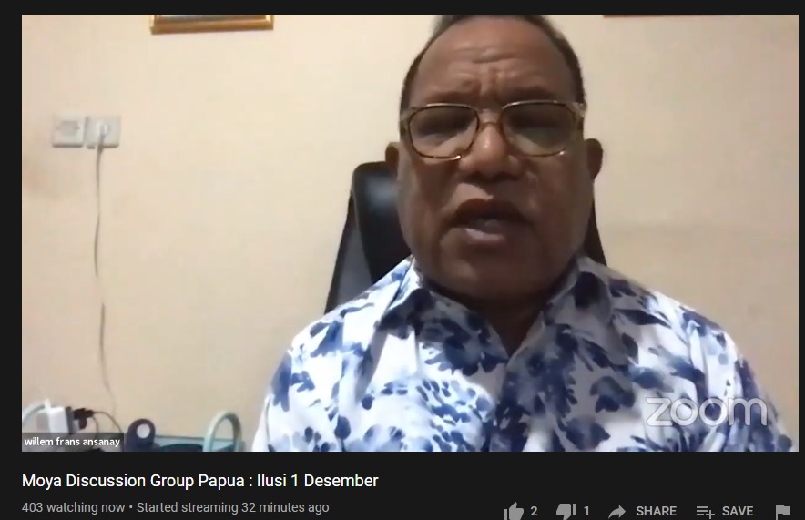 Moya Institute dan WAG Unity in Diversity (UiD) menggelar Moya Discussions Grup bertajuk: Ilusi 1 Desember. Dengan Narasumber: Dubes Prof. Imron Cotan (Pemerhati Papua dan Pakar Politik Internasional), Willem Frans Ansanay (Ketua Bamus Papua dan Papua Barat), Ali Kabiay (Ketua DPD Pemuda Mandala Trikora Provinsi Papua) dan Moderator: Hery Sucipto