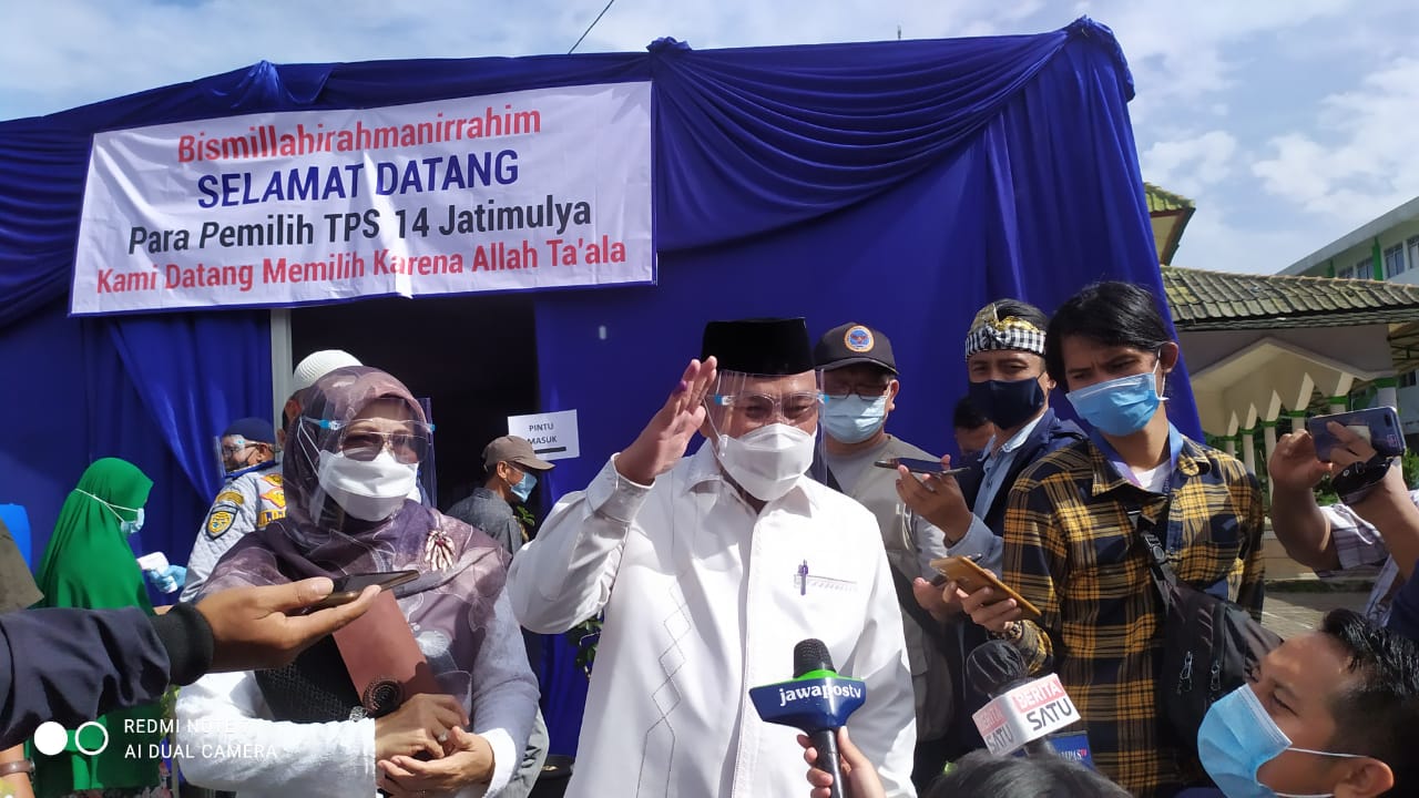 INDONESIAUPDATE.ID – Petahana calon Wali Kota Mohammad Idris bersama istrinya Elly Farida telah melakukan pencoblosan di Tempat Pemugutan Suara (TPS) 14 kawasan Kelurahan Jatimulya, Kecamata Cilodong, Kota Depok pada Rabu (9/12/2020).