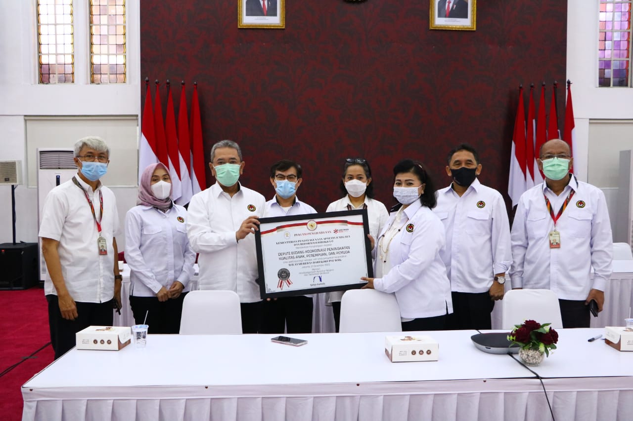 Penghargaan tersebut diberikan oleh Menteri Pemberdayaan Aparatur Negara dan Reformasi Birokrasi (Kemenpan RB) Tjahyo Kumolo secara virtual kepada Pelaksana Tugas (Plt) Deputi Bidang Peningkatan Kualitas Anak, Perempuan, dan Pemuda Kemenko PMK Y.B Satya Sananugraha, dalam acara Penganugerahan Zona Integritas Menuju Wilayah Bebas Korupsi (WBK) dan Wilayah Birokrasi Bersih dan Melayani (WBBM) Tahun 2020, pada Senin (21/12).