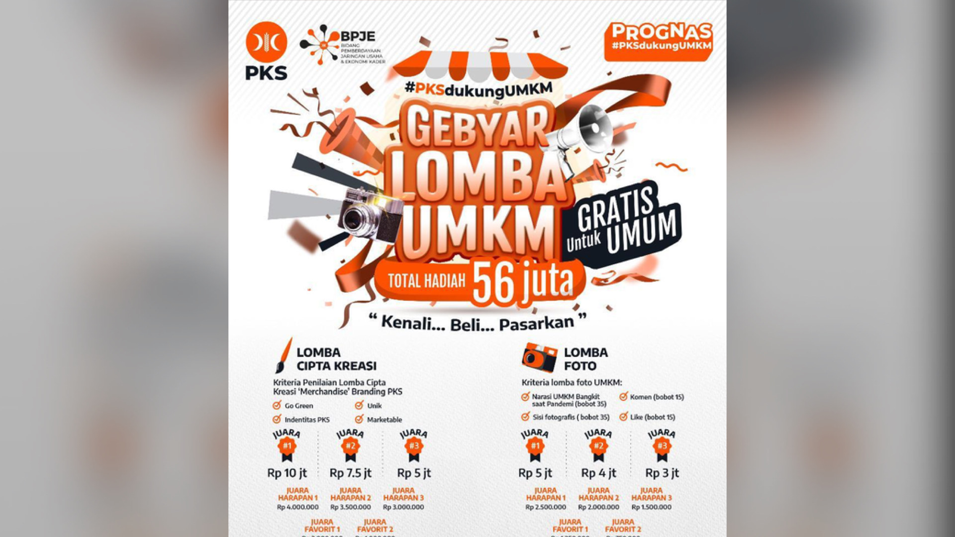 Imam menyebutkan perlombaan bertema UMKM dengan total hadiah 56 juta.