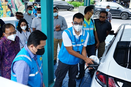Hingga saat ini PLN telah membangun 32 titik Stasiun Pengisian Kendaraan Listrik Umum (SPKLU) di 22 lokasi tersebar di 12 kota, serta 33 titik Stasiun Penukaran Baterai Kendaraan Listrik Umum (SPBKLU) tersebar di 3 kota yaitu Banten, Bandung, dan Bali.