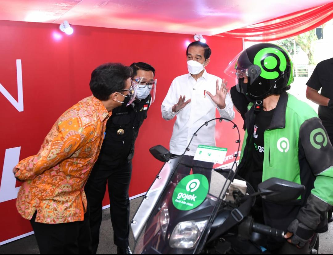 Saat meninjau Presiden mengapresiasi konsep drive-thru yang diterapkan pada pos vaksinasi hasil kolaborasi Halodoc dan Gojek ini, “Saya sudah melihat proses vaksin yang seperti tadi.