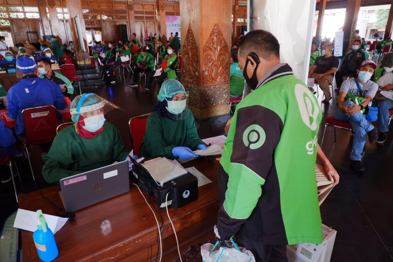 Pemberian vaksin ini juga secara khusus ditujukan bagi ratusan mitra Gojek di kota Surakarta.