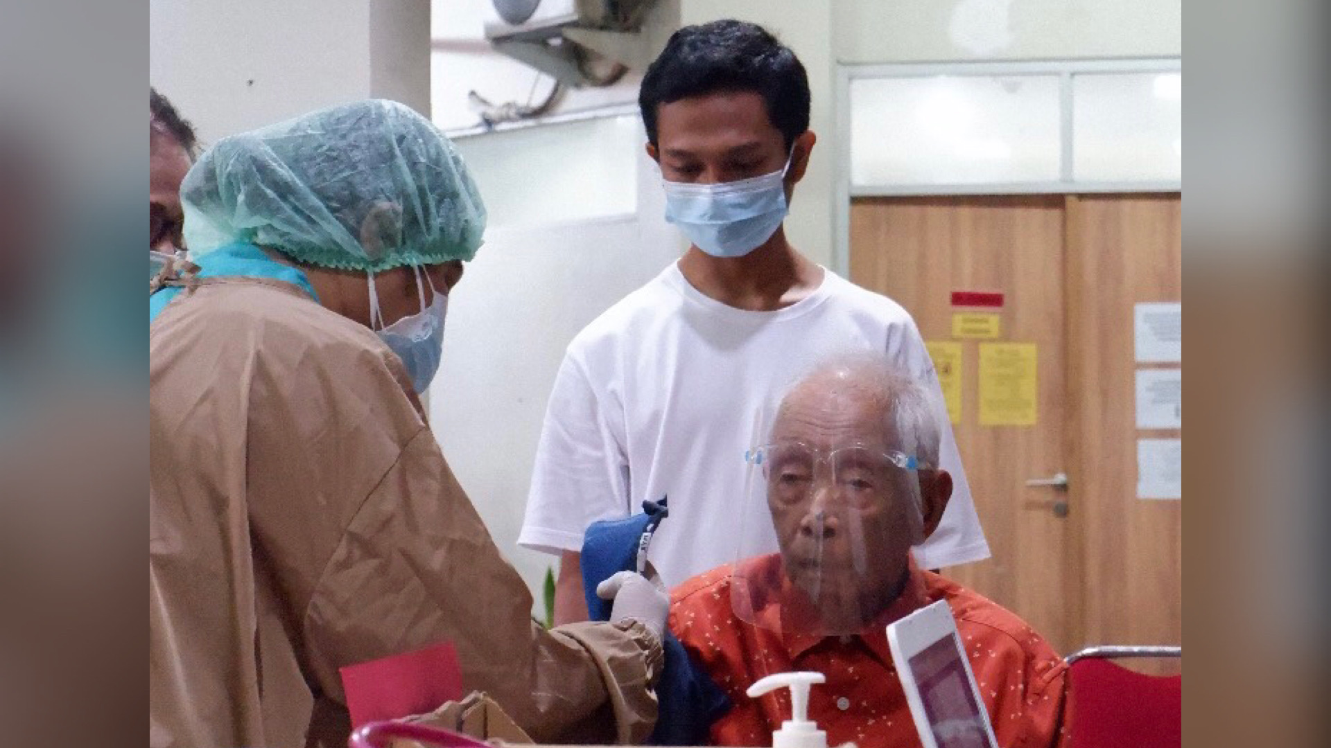 Saat penyuntikan, Wirjawan bersemangat dan sangat antusias bahkan diselingi canda tawa. Selesai vaksin, sang kakek menunggu untuk observasi dan diperbolehkan pulang ke rumah.
