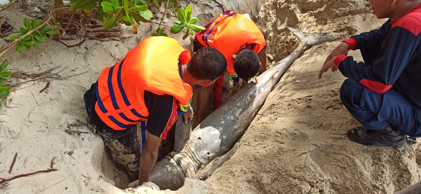 INDONESIAUPDATE.ID – Kementerian Kelautan dan Perikanan (KKP) melalui Balai Pengelolaan Sumberdaya Pesisir dan Laut (BPSPL) Padang melaksanakan penguburan lumba-lumba terdampar pada Sabtu lalu (9/4/2021) di Kawasan Pantai Tanjung, Kabupaten Natuna.
