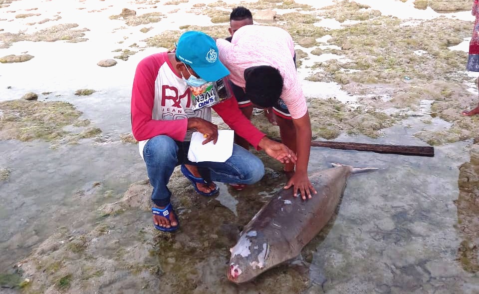 “Dugong yang ditemukan diperkirakan masih anakan karena ukurannya cukup kecil. Panjangnya 120 cm, lebar 65 cm, lingkar perut 83 cm dan panjang ekor 35 cm.