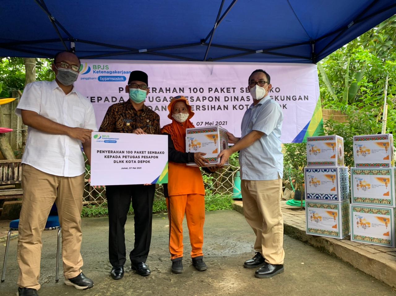 BPJamsostek Cabang Depok Berikan Bantuan Paket Sembako Kepada Petugas Pesapon DLHK