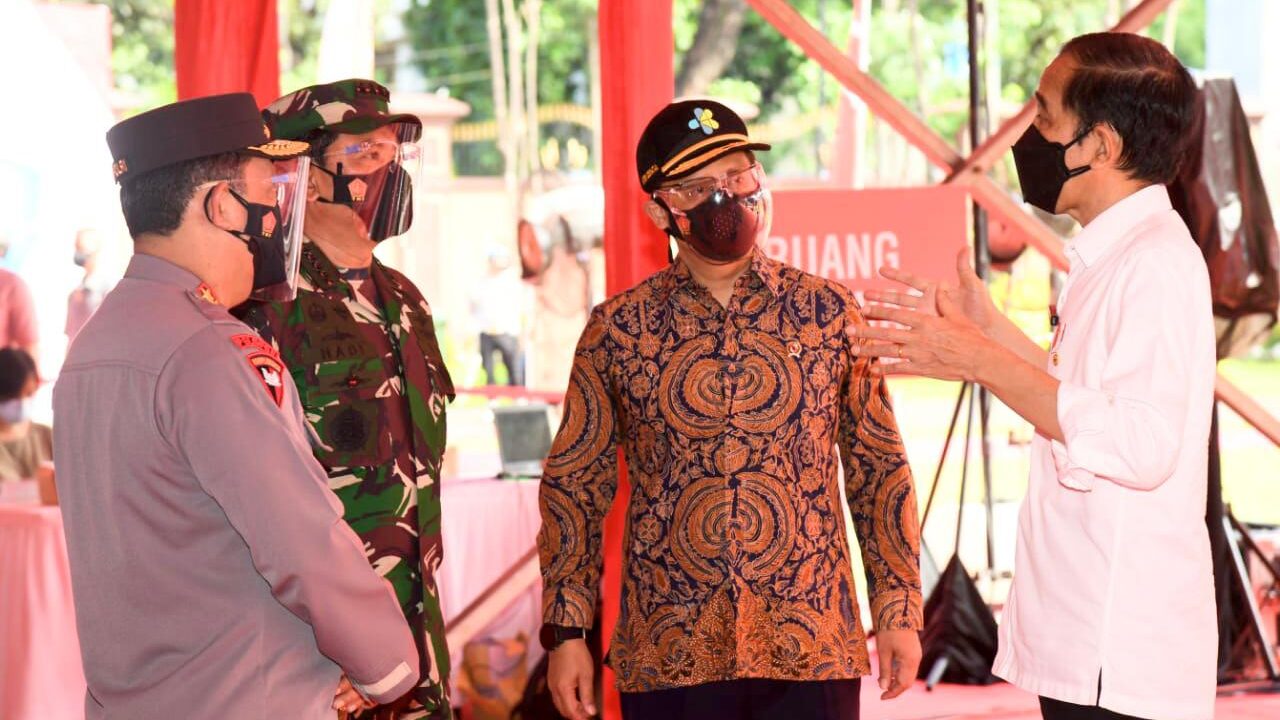 Hal tersebut disampaikan Presiden dalam keterangan pers usai meninjau vaksinasi Covid-19 massal di Lapangan Bhayangkara Mabes Polri, Jakarta Selatan, pada Sabtu, 26 Juni 2021.