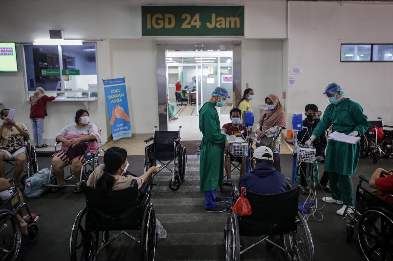 Kepayahan menampung pasien, Rumah Sakit Umum Daerah (RSUD) Chasbullah Abdulmadjid, Kota Bekasi, memboyong Unit Gawat Darurat (UGD) ke tenda besar di pelataran parkir. Ruang UGD digunakan sebagai ruang rawat dan memberi tambahan 75 bed untuk pasien Covid-19. Namun tak urung ruang UGD darurat yang berisi 30 bed itu pun penuh pada Jumat (25/6/2021) pagi, hanya berselang dua hari setelah dioperasikan.