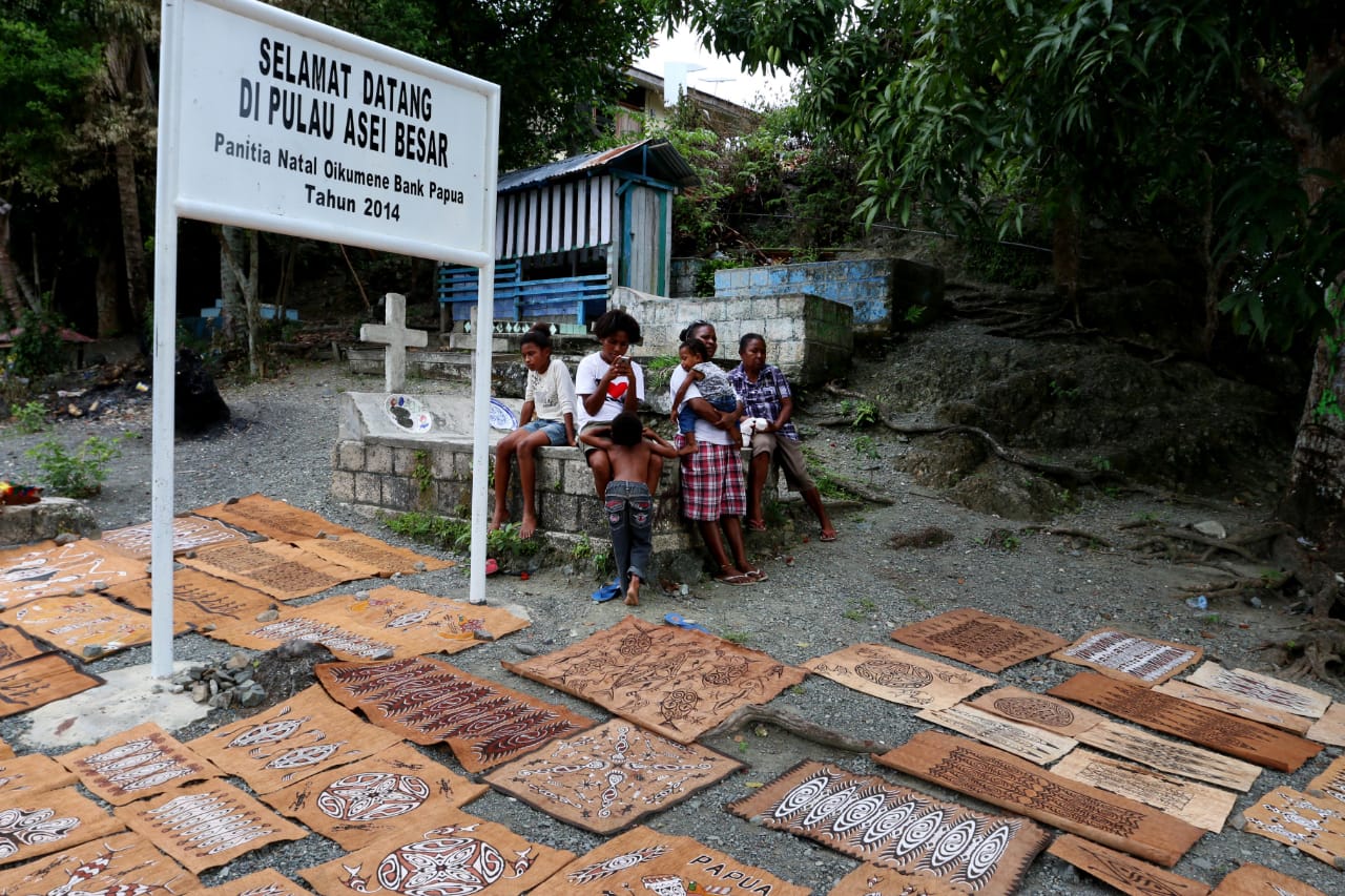 Mama penjual lukisan khombow di Kampung Asei, Sentani, Papua. (Bismo Agung via indonesia.go.id)