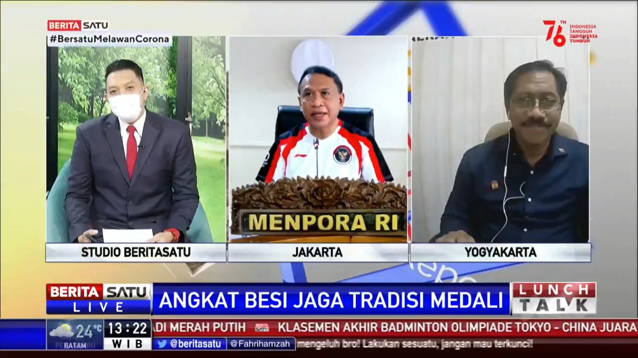 INDONESIAUPDATE.ID – Angkat Besi Jaga Tradisi Medali, demikian tajuk diskusi menarik bersama Menpora Amali dan Ketua Asosiasi Profesor Keolahragaan Indonesia Djoko Pekik Irianto, di Program Lunch Talk, Berita Satu TV, Selasa (3/8) siang. Dalam rentang 20 tahun atau enam kali gelaran Olimpiade, yaitu sejak Olimpiade Sydney 2000 cabor angkat besi tidak absen sekalipun menyumbang medali.