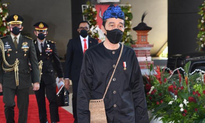 “Busana yang saya pakai ini adalah pakaian adat Suku Baduy. Saya suka karena desainnya yang sederhana, simpel, dan nyaman dipakai,” ujar Presiden mengenai pakaian yang dikenakannya.