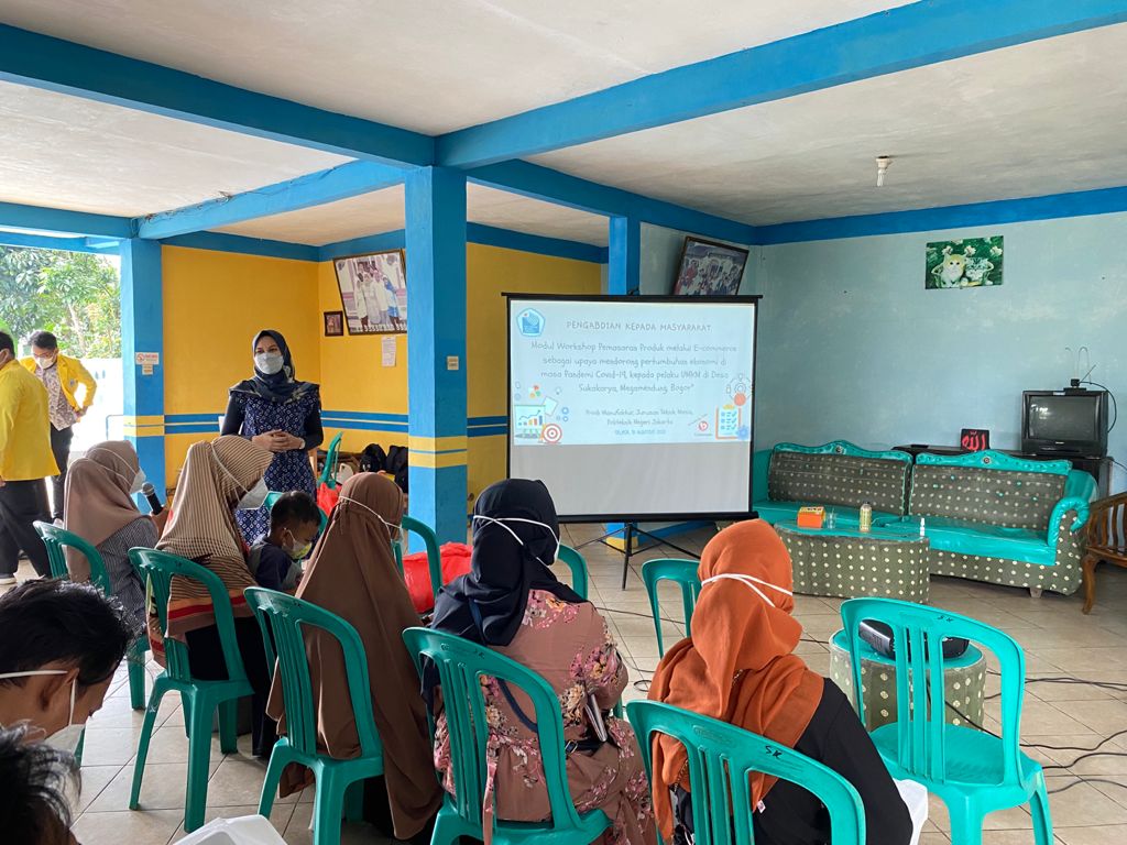 INDONESIAUPDATE.ID – “Beralih ke online menjadi solusi terbaik bagi para pelaku UMKM untuk dapat bertahan dari pandemi Covid-19”, berangkat dari gagasan itulah yang mengantarkan dosen-dosen Program Studi Manufaktur, Jurusan Teknik Mesin, Politeknik Negeri Jakarta untuk melakukan pengabdian masyarakat ke Desa Sukakarya, Kec. Megamendung, Kab. Bogor.