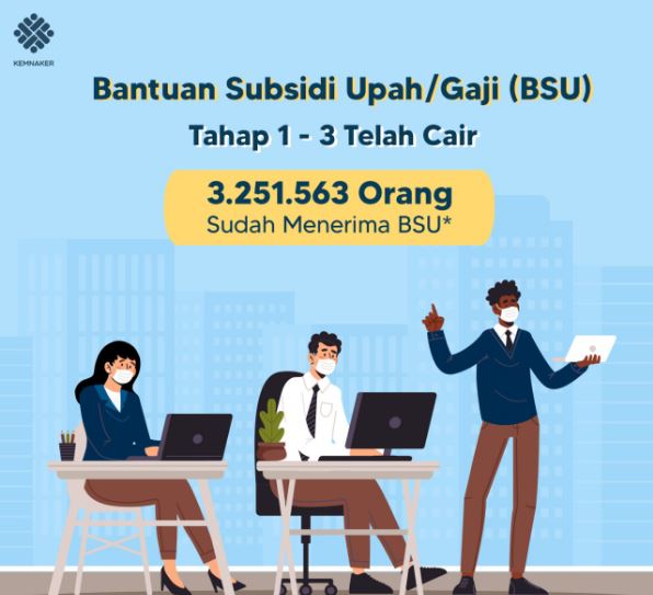 INDONESIAUPDATE.ID – Menteri Ketenagakerjaan (Menaker) Ida Fauziyah menyampaikan bahwa realisasi penyaluran program bantuan subsidi gaji/upah bagi pekerja/buruh (BSU) 2021 hingga 3 September telah mencapai 3.251.563 orang. Jumlah itu merupakan 37,4 persen dari total target penerima BSU sebanyak 8,7 juta orang.