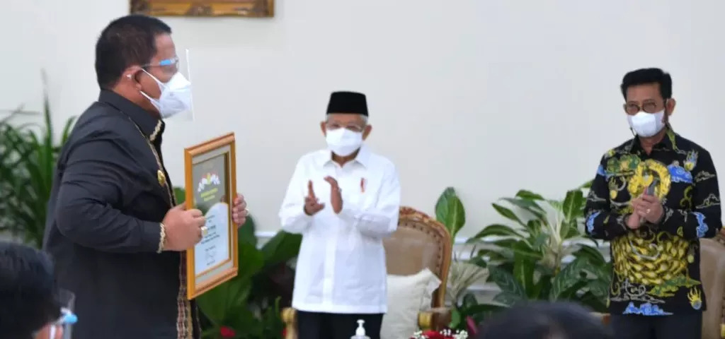 “Karena itu kita harus bersyukur bahwa di tengah disrupsi yang diakibatkan pandemi, sektor pertanian ternyata mampu hadir sebagai tulang punggung perekonomian nasional,” ujar Wapres yang didampingi Menteri Pertanuan RI, Syahrul Yasin Limpo dalam acara Penganugrahan Penghargaan Bidang Pertanian Tahun 2021 yang diselenggarakan secara luring di Istana Wapres Jakarta, Senin, 13 September 2021.