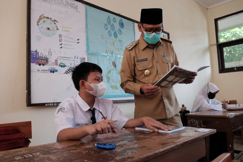 INDONESIAUPDATE.ID – Wakil Wali Kota Depok, Imam Budi Hartono melakukan inspeksi mendadak atau sidak pelaksanaan Pembelajaran Tatap Muka Terbatas (PTMT) untuk melihat penerapan protokol kesehatan (prokes).