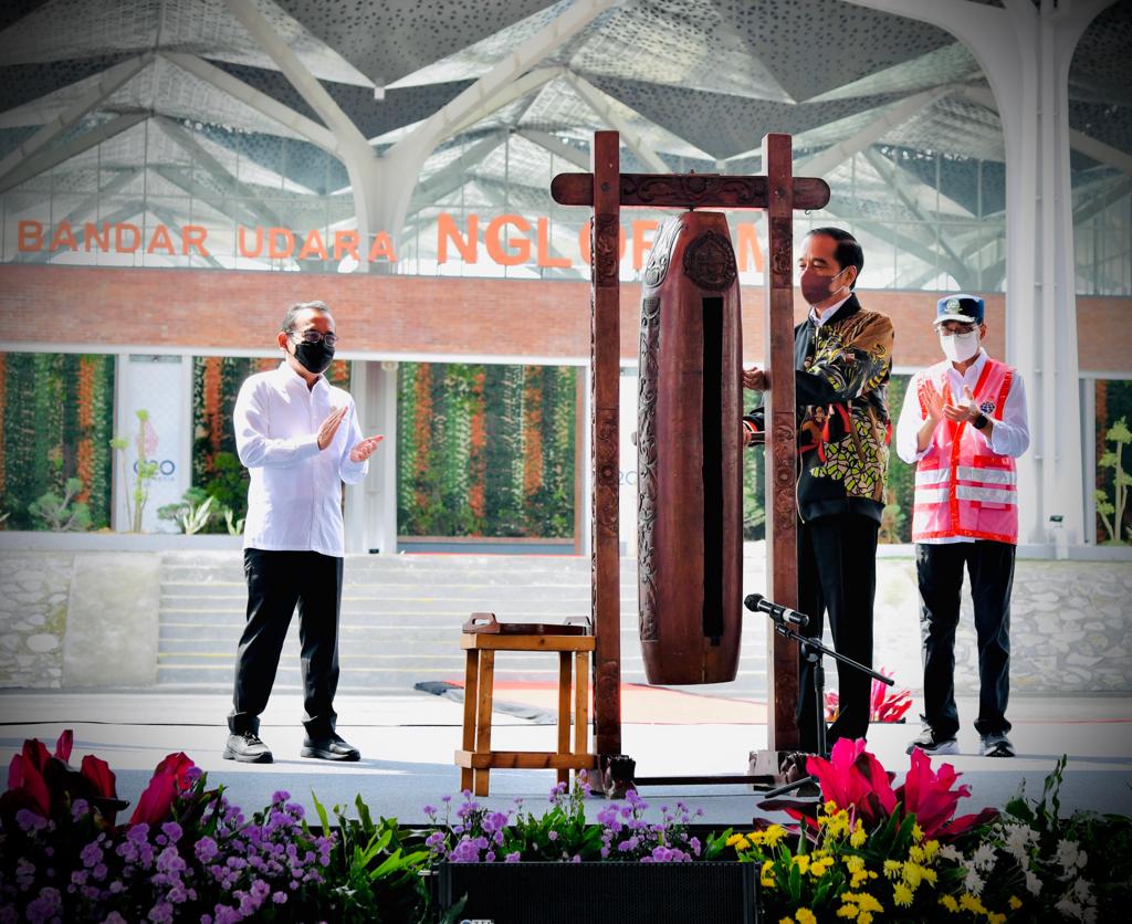 “Alhamdulillah pada pagi hari ini kita bisa melihat Bandara Ngloram di Cepu, Kabupaten Blora, Provinsi Jawa Tengah telah selesai dan siap untuk dimanfaatkan masyarakat,” ucap Kepala Negara.