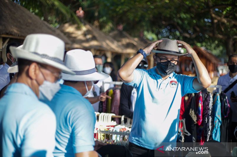 Bima Arya mengajak para kepala daerah untuk berbelanja souvenir di UMKM yang menjajakan produknya di Jalan Setapak, Pantai Duyung, Sanur.