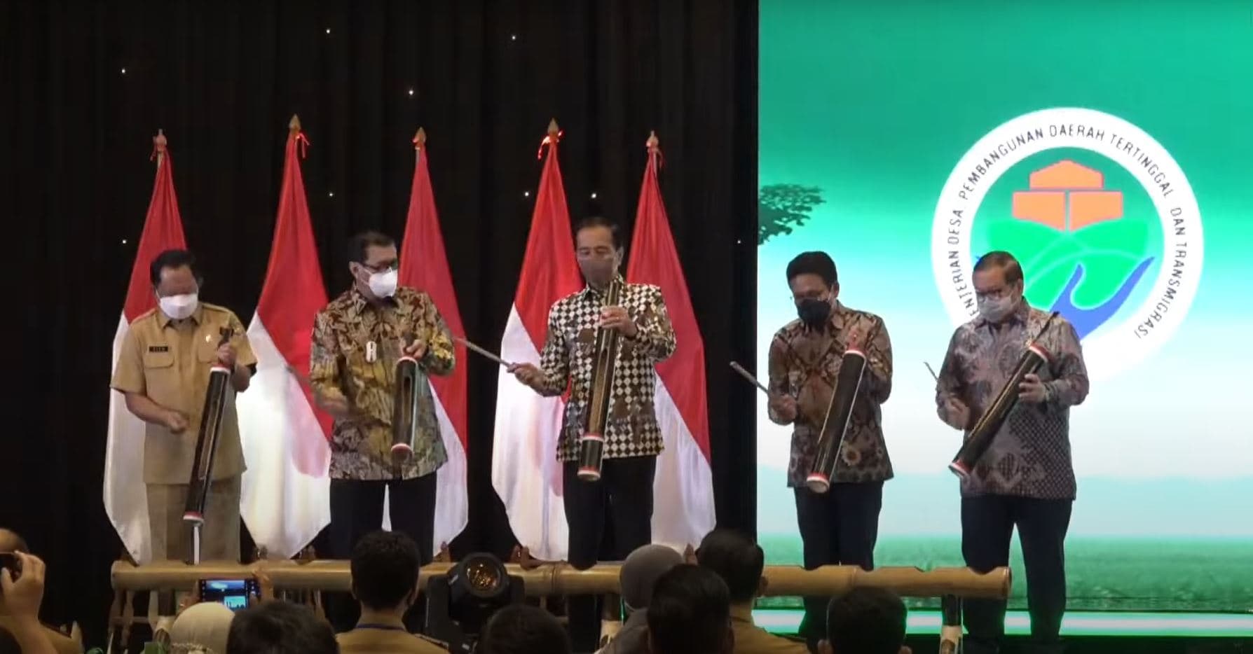 Setelah memberikan sambutan, Presiden Jokowi didampingi oleh Sekretaris Kabinet Pramono Anung, Menteri Hukum dan HAM Yasonna Laoly, Menteri Desa dan Pembangunan Daerah Tertinggal dan Transmigrasi Abdul Halim Iskandar, serta Menteri Dalam Negeri Tito Karnavian memukul kentongan sebagai tanda peresmian.