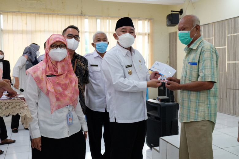 INDONESIAUPDATE.ID – Wali Kota Depok, Mohammad Idris menyerahkan secara simbolis kartu ATM bantuan sosial (bansos) Kartu Depok Sejahtera (KDS) ke masyarakat di aula Kantor Kecamatan Cimanggis, Rabu (02/02/22). Sebanyak 162 warga Cimanggis mendapatkan bansos KDS setelah melewati proses verifikasi yang dilakukan oleh koordinator di masing-masing kelurahan.