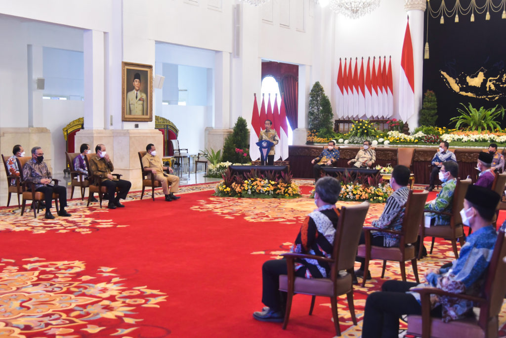“Yang pertama, kita perlu terus-menerus melakukan terobosan. Secepatnya melakukan transformasi digital yang mengadopsi regulatory technology, menemukan terobosan hukum atas berbagai permasalahan-permasalahan yang fundamental,” kata Presiden.