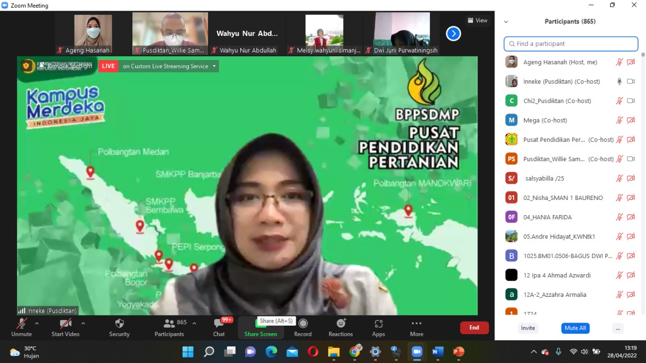 Koordinasi persiapan pelaksanaan tes penerimaan mahasiswa baru tahun 2022 secara online ini di buka oleh Inneke Kusumawaty, selaku Koordinator Penyelenggaraan Pendidikan Pusdiktan. Kegiatan ini di ikuti oleh para calon mahasiswa baru, pimpinan politeknik lingkup Kementerian Pertanian, serta Tim IT pelaksana tes CAT.