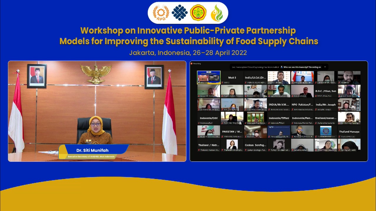 Mempertimbangkan berbagai faktor yang dapat mempengaruhi pencapaian rantai pasokan pangan berkelanjutan dan sumber daya yang diperlukan untuk mengatasinya, Kementan melalui Badan Penyuluhan dan Pengembangan Sumber Daya Manusia Pertanian (BPPSDMP) bekerjasama dengan Asian Productivity Organization (APO) Tokyo dan Kementerian Ketenagakerjaan RI menyelenggarakan Workshop on Innovative Public–private Partnership Models for Improving the Sustainability of Food Supply Chains, pada 26 s.d 28 April 2022.