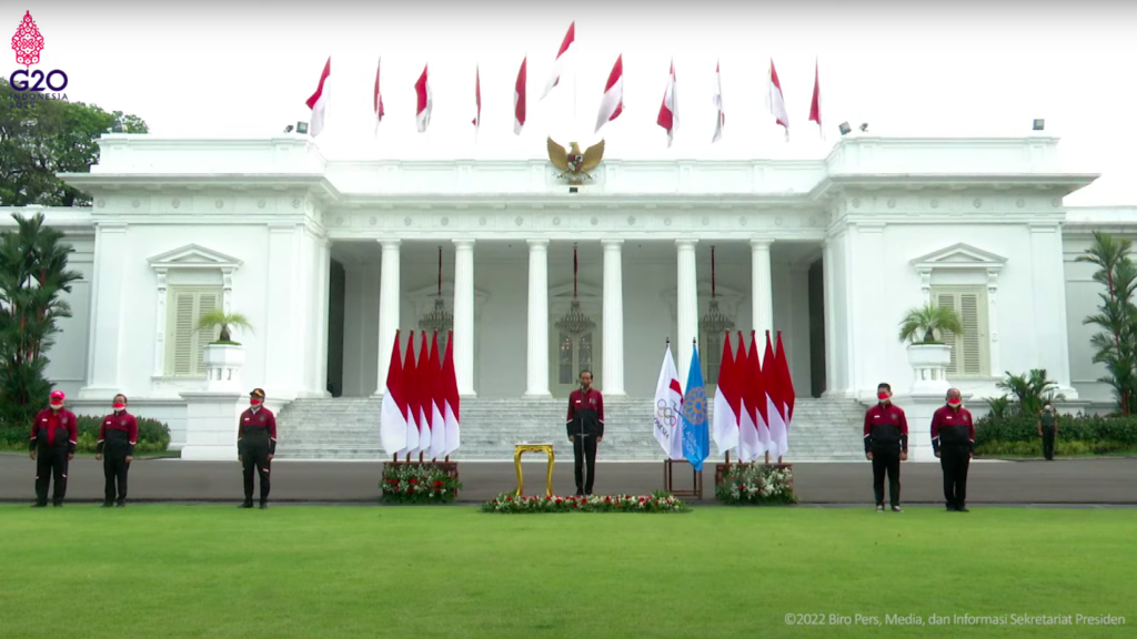 Acara Pelepasan Tim Indonesia Menuju SEA Games XXXI Vietnam 2021, di Halaman Istana Merdeka, Jakarta, Senin (09/05/2022). (Sumber: Tangkapan Layar)