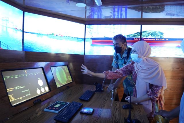 “Akhirnya kini ship simulator buatan dalam negeri kita ini dengan kinerja dan kualitas yang enggak kalah harganya lebih murah 50 persennya,” ujar Dirjen Wikan.