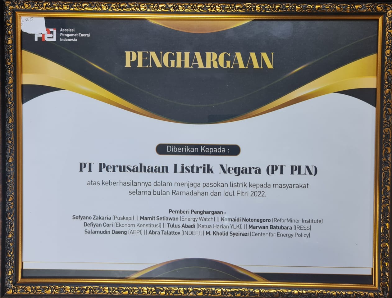 Sukses Jaga Keandalan Listrik Selama Ramadan dan Idul Fitri 2022, PLN Raih Penghargaan dari APEI