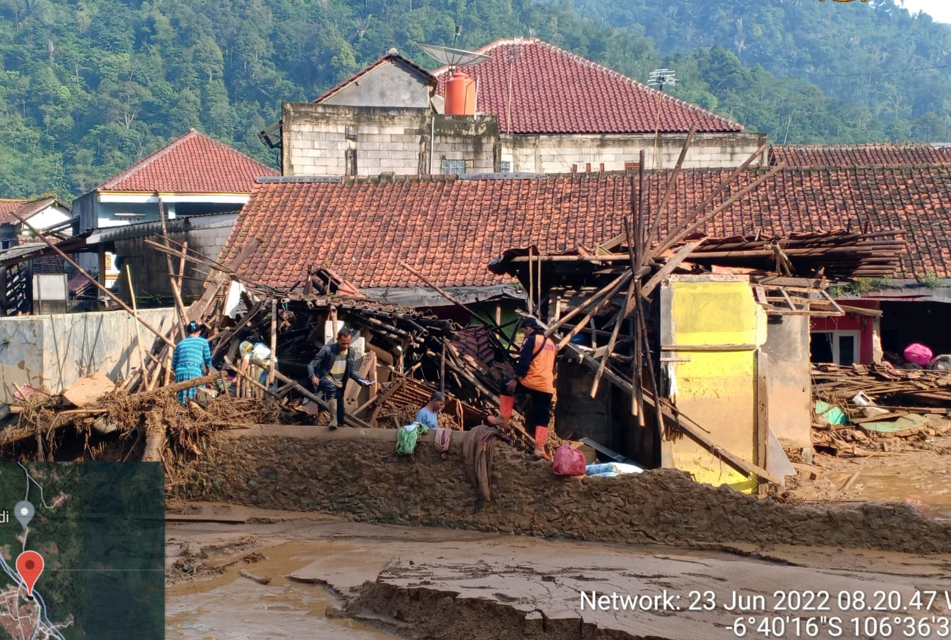 BPBD Kabupaten Bogor mencatat kurang lebih 600 unit rumah terdampak, 1 unit rumah rusak sedang, 5 unit rumah rusak berat, akses jalan desa penghubung antara RT 01, 02, 03, 04 dan 06 terputus dan satu gedung pesantren Al-Insyiro terdampak.