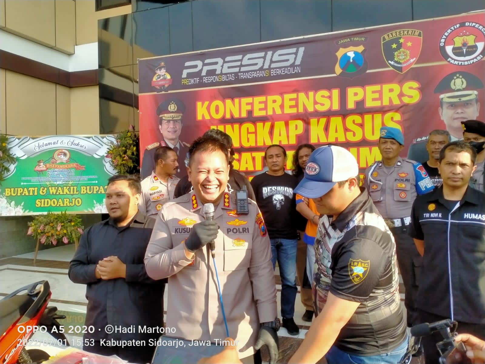 INDONESIAUPDATE.ID – Kado ulang tahun Bhayangkara ke 76, Polresta Sidoarjo berhasil ungkap penembakan terhadap Sabar (37) pengusaha rongsokan asal Desa Tenggulunan Kecamatan Candi Kabupaten Sidoarjo, di halaman Mapolresta Sidoarjo, Jum’at (1/7).