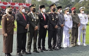 Selain itu hadir juga di lapangan upacara Mapolda Jatim, Kajati Jatim Mia Amiati, Ketua DPRD Prov. Jatim Kusnadi, Ka BNNP Jatim Brigjen Pol Moh Aris, Kabinda Jatim Marsma TNI Rudy Iskandar, Wakalanti Surabaya, Wadankodiklatal, Kaskoarmada II, Kasdivif 2 Kostrad, Danpasmar 2, Danlanud Muljono, Wadanlantamal V, Seklem AAL, Asops Kogartap III Surabaya, Pejabat utama Kodam V/Brawijaya, Pejabat utama Polda Jatim serta Kapolrestabes/resta/res beserta Pejabat utama polres secara virtual dari tempat masing-masing.