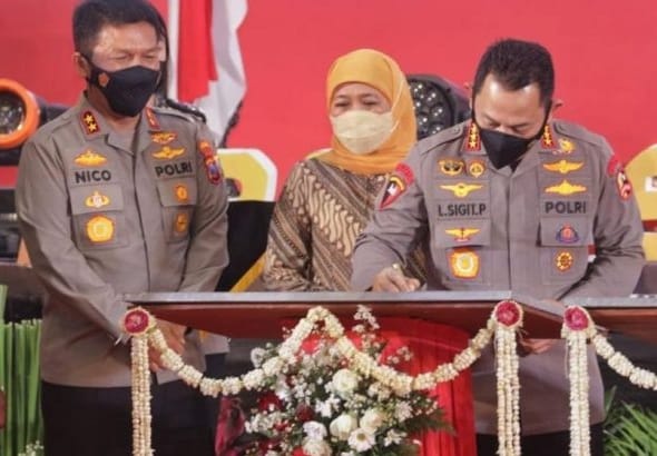 Dalam kesempatan ini, Kapolri Jenderal Listyo Sigit Prabowo secara simbolis meresmikan 6 gedung dengan menandatangani batu Prasasti, diantaranya Gedung Ditreskrimsus Polda Jatim 4 Lantai, Gedung parkir kendaraan roda empat yang dapat menampung kendaraan sebanyak 250 Mobil, Gedung parkir kendaraan roda dua yang dapat menampung kendaraan sebanyak 500 Sepeda motor, Gudang Bersama 2 Lantai, Renovasi Gedung Ditresnarkoba Polda Jatim, Renovasi Gedung Waspada Polda Jatim, Rumah pompa dengan kapasitas 1 meter kubik per detik untuk mengatasi banjir di lingkungan Mapolda Jatim, Renovasi rumah dinas type 90 sebanyak 9 unit dan type 70 sebanyak 12 unit.