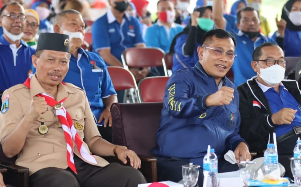 Kadis Kominfo Jatim Hudiyono, saat menghadiri pembubaran kontingen KORMI Kabupaten Sidoarjo dalam FORNAS VI Palembang, Minggu (7/8/2022) di Lapangan Tenis SMANOR Sidoarjo.