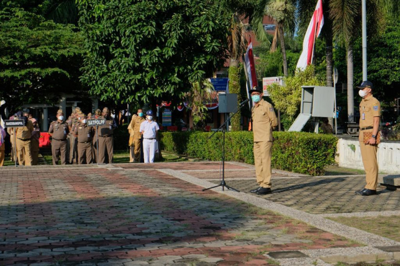 “Seluruh rumah diingatkan harus pasang Bendera Merah Putih tanpa terkecuali,” ungkapnya dalam apel pagi di Lapangan Balai Kota, Senin (08/08/22).
