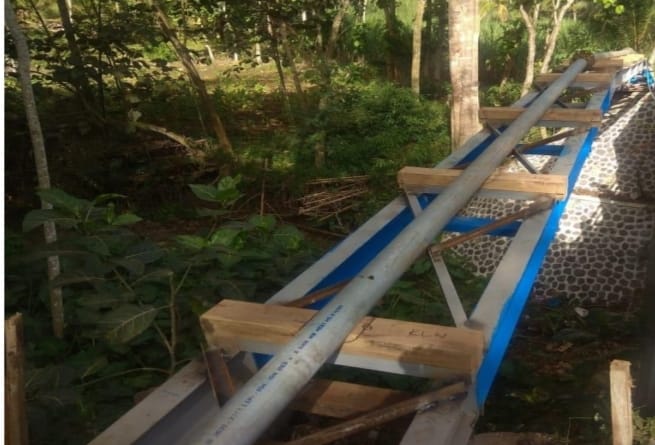 Toyib menambahkan, untuk trus block sudah dicor sesuai spesifikasi yang ditetapkan dengan menggunakan semen dan pasir. Begitu juga dengan dudukan pipa menggunakan kayu jati sesuai RAB.jelasnya.