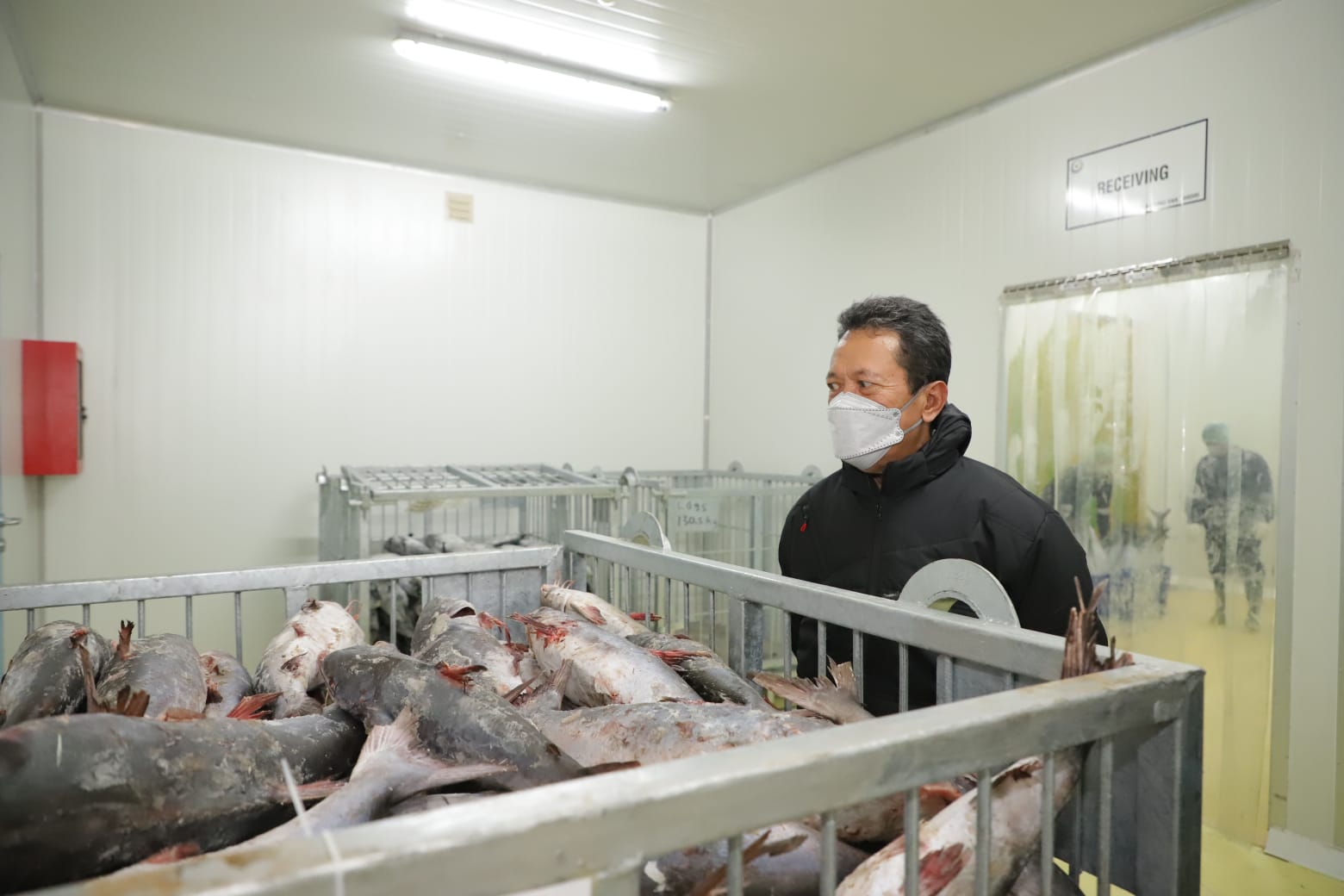 “Di sini harus menjadi salah satu sentra perikanan. Sentra perikanan itu syaratnya adalah infrastruktur sentra perikanan harus dibereskan. Karena di sini sudah dekat dengan pasar maka tentu saya kira salah satunya adalah cold storage yang dibangun ini. Sebelumnya 150 ton (sudah dibangun), sekarang 300 ton. Harapan saya tahun depan akan dibangun lagi,” ujar Menteri Trenggono dalam sambutannya.